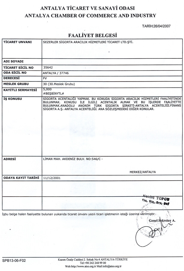 Tel: 0242 259 0404 Fax : 0242 259 0405